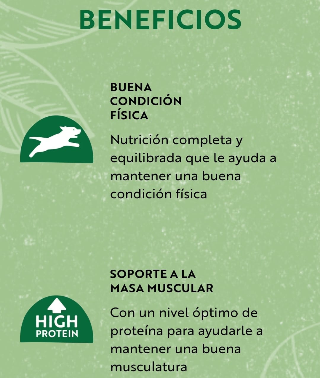 🍗 Con pollo como ingrediente principal, aporta proteínas de alta calidad, acompañado de una equilibrada combinación de frutas, verduras, cereales integrales y hierbas aromáticas. Todo ello en la proporción adecuada para proporcionar una nutrición completa y equilibrada, que favorece su vitalidad y bienestar diario.